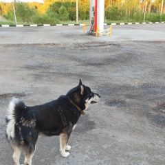23. 05. 2021 Найдена собака Сибирская лайка или Хаски. Кобель очень крупный и в хорошей физической форме. Взрослый. Окрас черный с коричневыми подпалинами. Очень ласковый. На нем зелёный брезентовый ошейник. Видно, что..