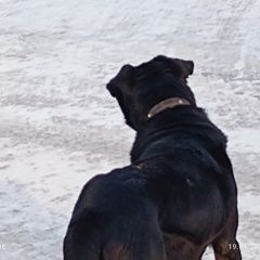 Окрас чёрный, с ошейником чёрным, широким. Тзывается, подходит ближе, ищет хозяина. В районе ул. Королева 12 в и спорткомплекса, расположенного рядом.