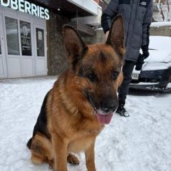 Найдена немецкая овчарка, кобель. 11. 01. 2026 в 15:00 в районе Маркова, мкр Березовый д. 194. (если на тел не отвечаю, пишите смс). телеграмм @lola_la38