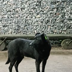 На входе в Мытищинском лесопарке около ТЦ Июнь наблюдаем вторую неделю ждущего с поджатым хвостом пса черного цвета.