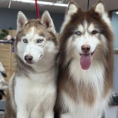 Убежала собака в районе ул Королева (погнался за самкой) Пес добрый, взрослый, нуждается в лечении Окрас темно коричневый с белой грудкой (помесь маламута и хаски) Глаза разного цвета