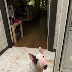 пожалуйста, помогите найти собаку (миниатюрный бультерьер) не агрессивный, любит людей. убежал в наморднике и поводке 5 метров в районе ул Зеленогорская 4