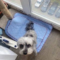 24. 04. 26 Найдена собака сука в томилино в частном секторе в районе ул. Лесная (рядом с лесом). На вид примерно 10 лет, окрас серый, недавно подстрижена. Собака контактная, небольшого размера, вес 5, 6 кг. Возможно цистит, возможно часто писает от стресса (очень напугана). Разговорчивая, дружелюбная. Были в ветеринарке-у собаки катаракта. Тел для связи..