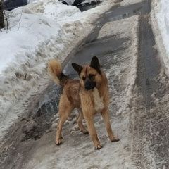 МОСКОВСКАЯ ОБЛАСТЬ ВОСКРЕСЕНСКИЙ г. о. п. г. т. ХОРЛОВО НАЙДЕНА СОБАКА ФЕВРАЛЬ 2026г. Недавно в поселке появился этот несчастный пес. Мальчик. Статный, очень красивый, похож на овчарку, возможно метис. Средних размеров, окрас рыжий, с темными /спина, хвост, уши, морда /эффект маски//, и светлыми /шея, грудь/ пятнами. Прибился к местной стае, но его не принимают и нападают на него. Сегодня он лежал весь заметанный снегом, дрожал от холода, не понимая, куда ему идти. Уже хромает на одну лапу. Видно, что собака явно была домашняя, не знает улицы, и явно не сможет на ней выжить. Людей побаивается, словно защищаясь. Местные жалуются, запросто могут вызвать отлов, и дальше ничего хорошего. Очень надеемся, что его ищут Ну или кто-то решит приютить парня .. Ирина.