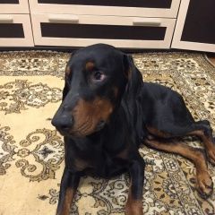 Пропала собака по кличке Зевс(окрас чёрный с коричневыми опалинами, не купированный (хвостик бубликом)Пожалуйста помогите найти члена семьи